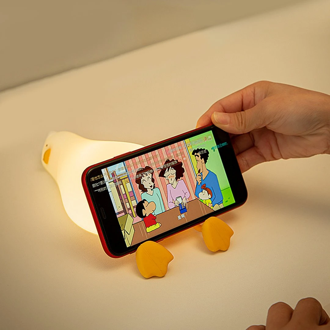 Let this cute nightlight lull you to sleep! Perfect for everyone who wants to have a glow in their room whilst they drift off to sleep. Featuring a lazy sleepy duck that will put a smile on your face every time you use it. You can also use it as a phone holder to watch your movies hands-free in bed or at your desk.