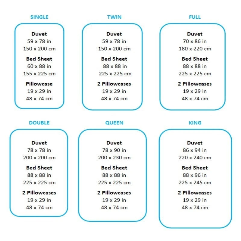 👑 International duvet size: Single, Twin, Full, Double, Queen & King