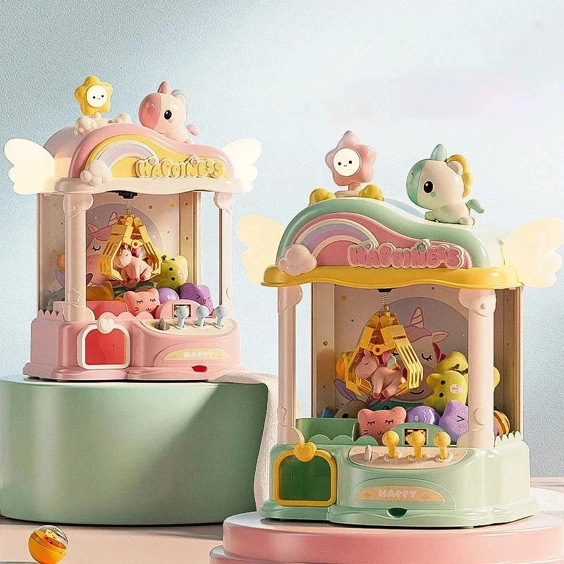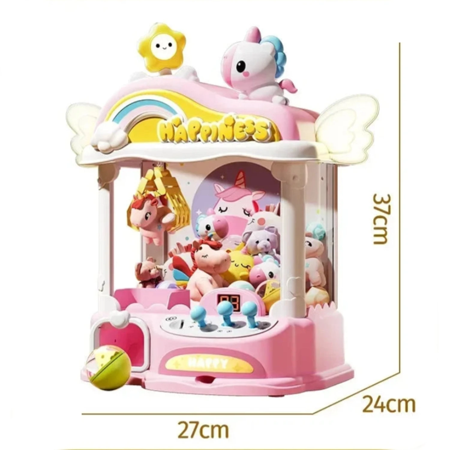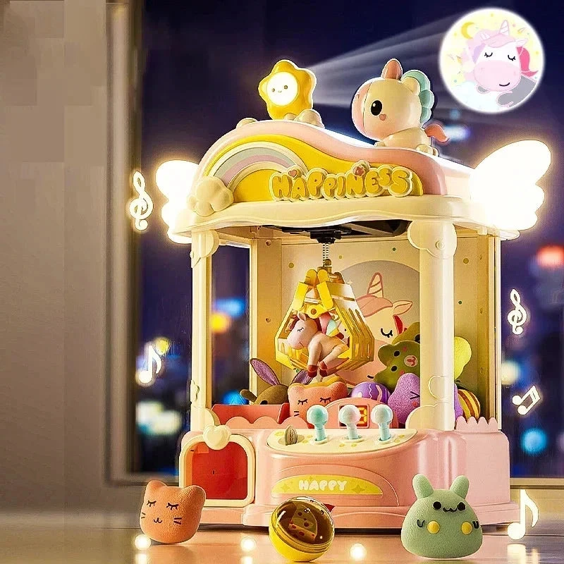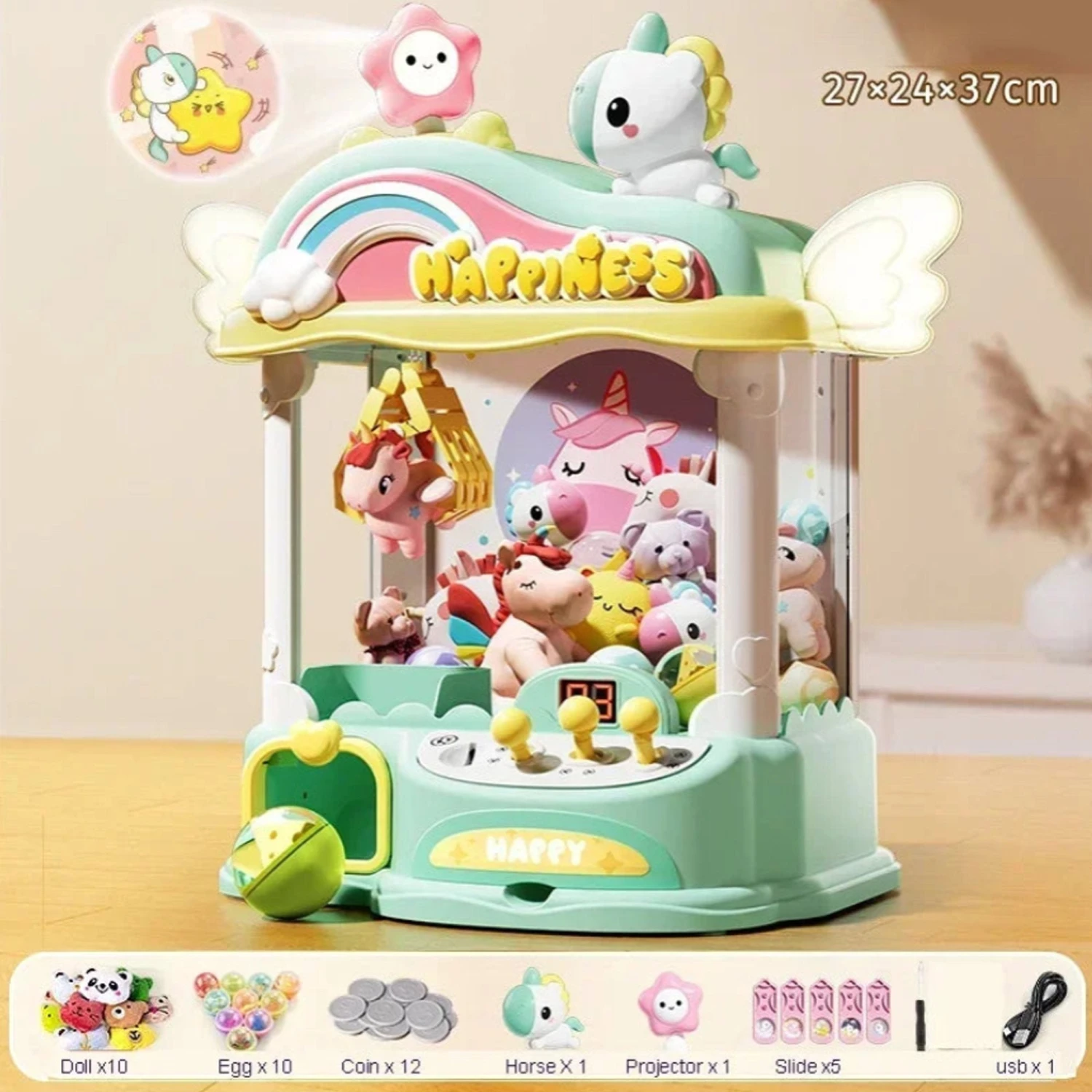🏰 Includes 1 claw machine, 10 dolls, 10 eggs, 1 unicorn, 1 projector, and 12 coins