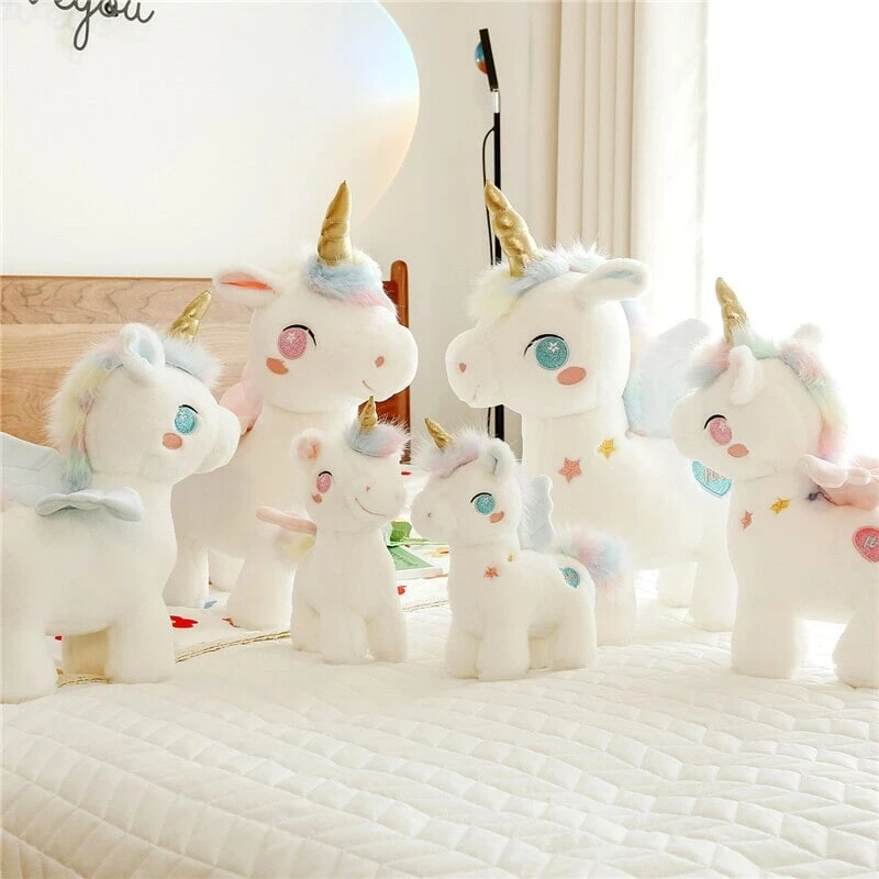 Everyone knows a child loves toys and a little extra softness and cuddly joy. This White Dreamy Unicorn Pony is one of the cutest plushies you will ever see. The super soft material makes it easy to play with this cute unicorn! So give your loved ones something amazing by surprising them with a super cute unicorn.