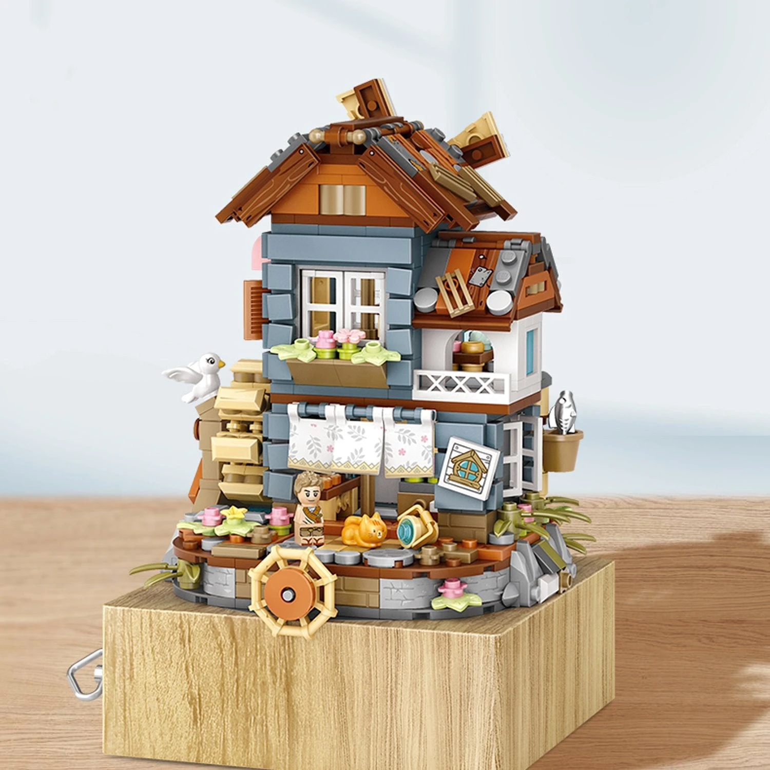 Display this highly detailed windmill house in your room after you enjoy the therapeutic building process. Featuring a music box that plays a soothing melody, and a windmill and watermill that spins with it. Â